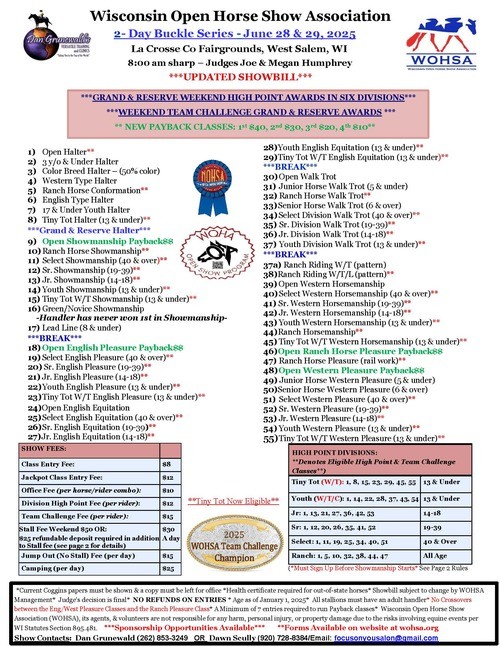 2025 WOHSA 2-Day Buckle Series Open Horse Show